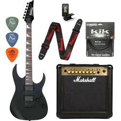 Zestaw gitara elektryczna Ibanez GRG121DX-BKF z combo Marshall MG15GFX Gold + akcesoria