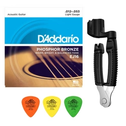 Zestaw D'Addario EJ16 struny do gitary akustycznej 12-53 z korbką i kostkami