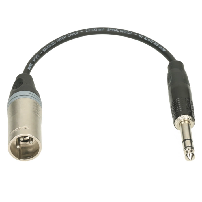 - Adapter Klotz XLR-BMP6.3, XLR męski na jack 6.35 mm stereo. Kabel MY206, ekran spiralny z miedzi, niska pojemność 60 pF/m. Profesjonalna jakość dźwięku i solidne wykonanie.
