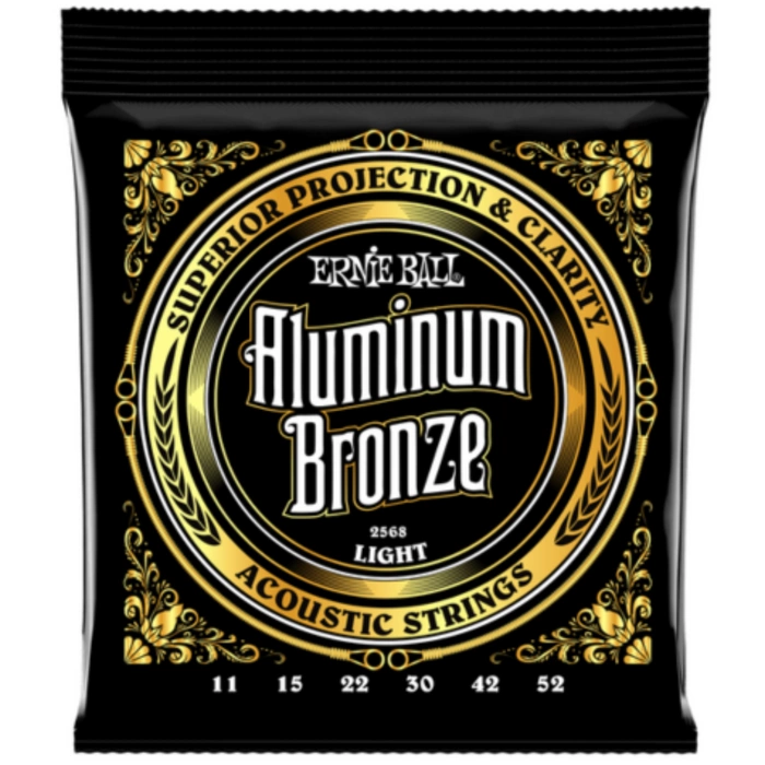 - Ernie Ball 2568 Light Aluminium Bronze to struny do gitary akustycznej, które charakteryzują się większą projekcją i klarownością dźwięku niż tradycyjne struny z brązu, wykonane z innowacyjnego drutu Aluminum Bronze owiniętego wokół rdzeni Maraging Steel.