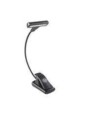 Praktyczny klips o szerokości do 25 mm umożliwia łatwe przymocowanie lampki do pulpitów muzycznych, blatów stołów czy innych powierzchni. Ponadto, lampka może pełnić funkcję stojącą, co dodatkowo zwiększa jej uniwersalność. Dzięki zasilaniu trzema bateriami Micro (AAA) 1,5 V (w zestawie) o typowej żywotności 10 godzin lub opcji zasilania sieciowego, lampka jest praktycznym rozwiązaniem zarówno w warunkach mobilnych, jak i podczas dłuższych sesji muzycznych.