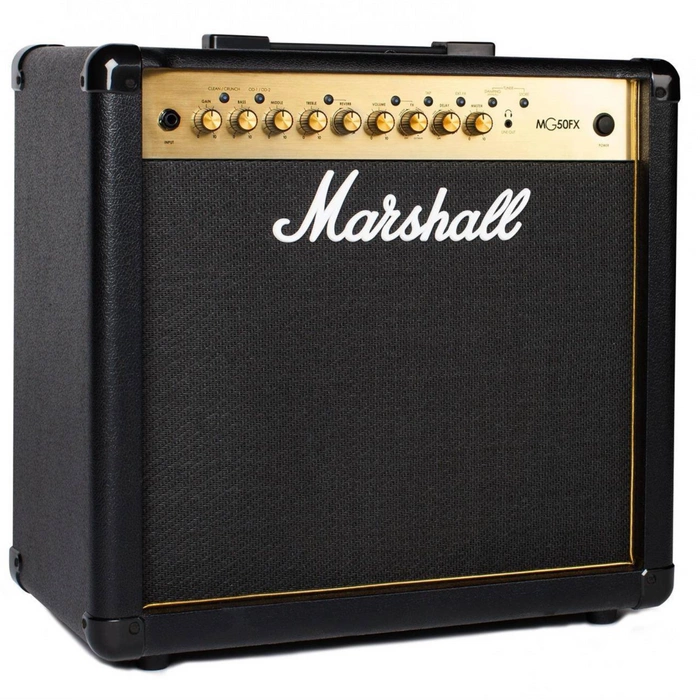 - Marshall MG50GFX Gold – wzmacniacz gitarowy combo 50W z 12” głośnikiem Custom, 4 kanałami i efektami cyfrowymi. Idealny na scenę i do studia.