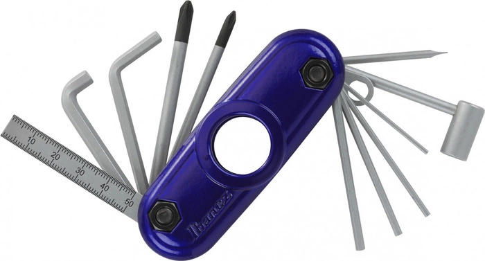 - Multitool do gitary Ibanez MTZ11-JB w kolorze Jewel Blue to praktyczne narzędzie wielofunkcyjne, idealne dla każdego gitarzysty, oferujące 11 niezbędnych narzędzi do konserwacji i regulacji instrumentu.