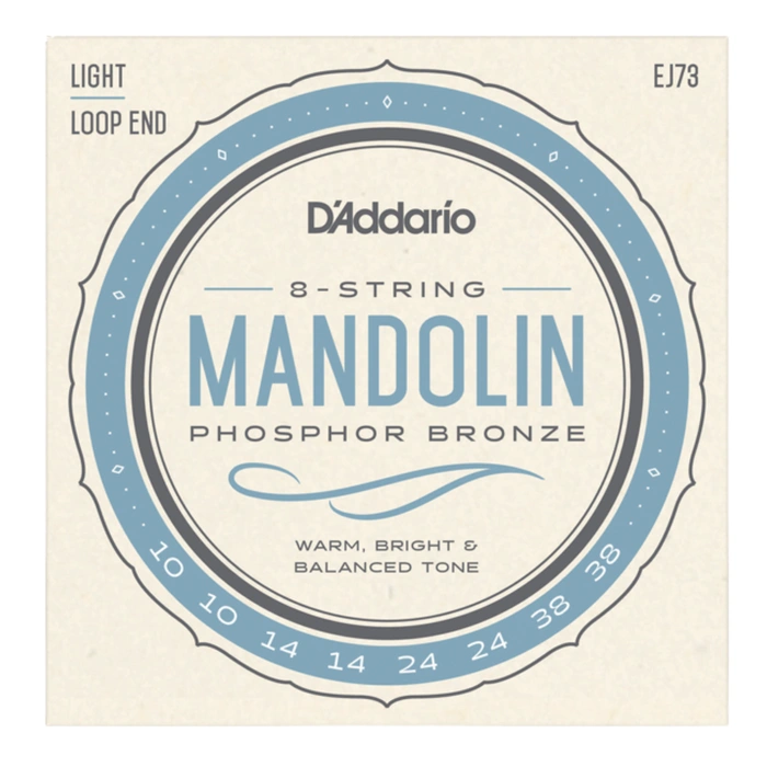 - D’Addario EJ73 to lekkie struny do mandoliny 10–38 z Phosphor Bronze. Ciepłe, zbalansowane brzmienie, wysoka trwałość i uniwersalne loop end.