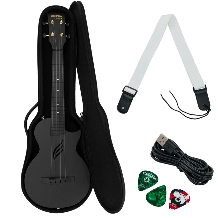 - Cascha HH 2258E to nowoczesne ukulele koncertowe wykonane z włókna węglowego. Oferuje jasne brzmienie, wygodę gry i odporność na warunki zewnętrzne. W zestawie: pokrowiec, pasek, 3 kostki i wbudowany pick-up.
