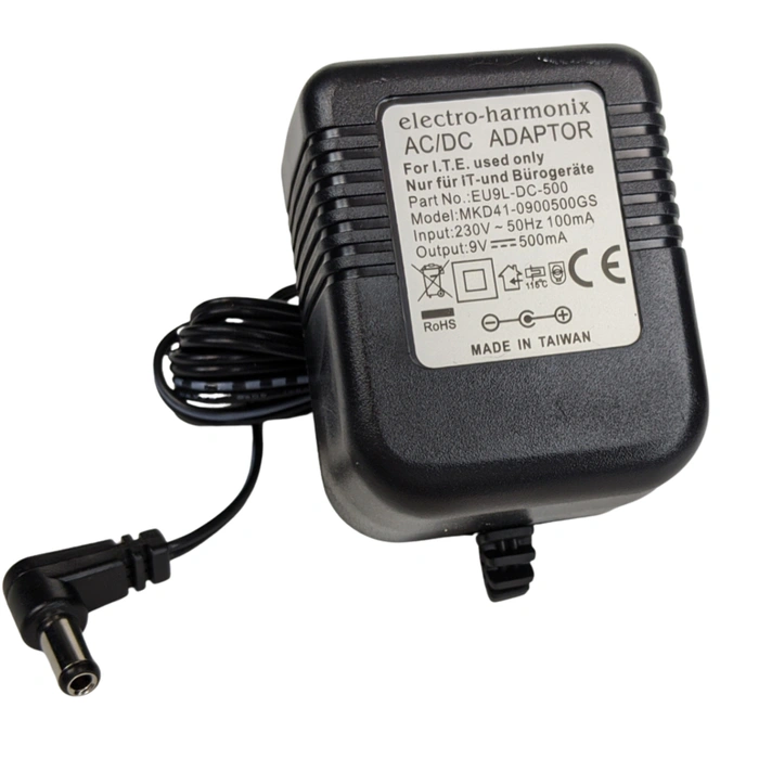 - Oryginalny zasilacz Electro-Harmonix 9V / 500 mA do klasycznych efektów EHX, takich jak 2880, HOG, Holiest Grail i 16-Second Delay.
