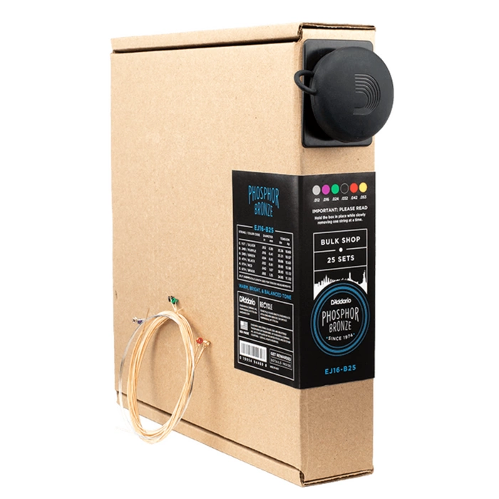 - Struny do gitary akustycznej D'Addario EJ16 Light 12-53 w zestawie 25PACK. Fosforobrązowe, niepowlekane, ciepłe i zbalansowane brzmienie. Idealne dla lutników, sklepów i szkół muzycznych.