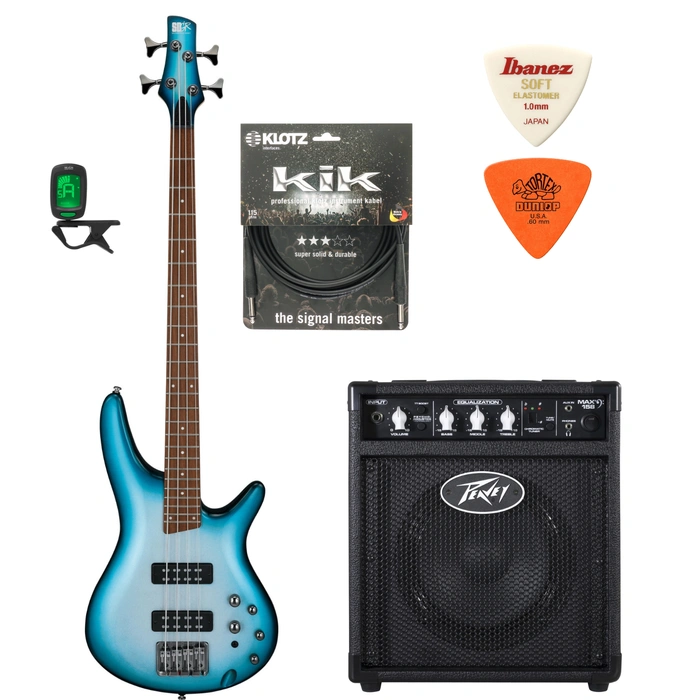 - Zestaw basowy: Ibanez SR300E-DOT + Peavey MAX 158 20W z tunerem, kablem KLOTZ 3 m oraz dwiema kostkami.
