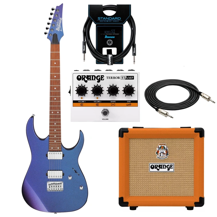 - Zestaw Ibanez GRG121SP-BMC z wzmacniaczem Orange Terror Stamp, kolumną Orange PPC-108 i akcesoriami to kompletny pakiet dla gitarzystów, oferujący unikalny styl, wszechstronne brzmienie i niezawodność w każdym zastosowaniu.