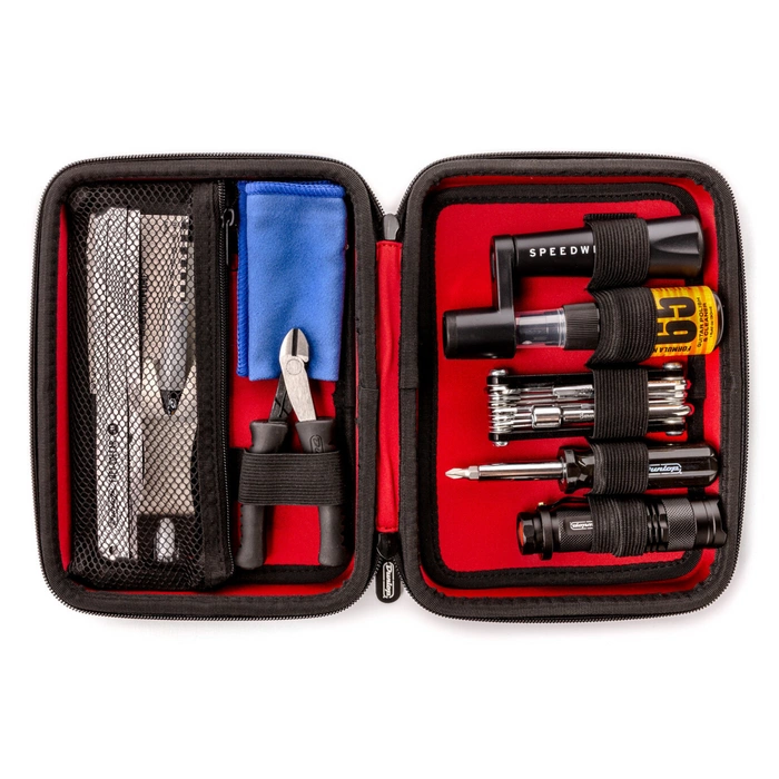 Dunlop DGT122 obejmuje również niezbędne akcesoria, takie jak ściereczka do polerowania progów, kołnierze progowe (.080„ i .125”), kompaktowy obcinak do strun oraz czterokierunkowy śrubokręt, który oferuje 2 końcówki płaskie i 2 krzyżakowe. Dzięki kluczowi uniwersalnemu Multi-Spanner oraz narzędziu wielofunkcyjnemu z kluczem sześciokątnym, użytkownicy mogą precyzyjnie dokonać drobnych napraw i regulacji swojego instrumentu.
